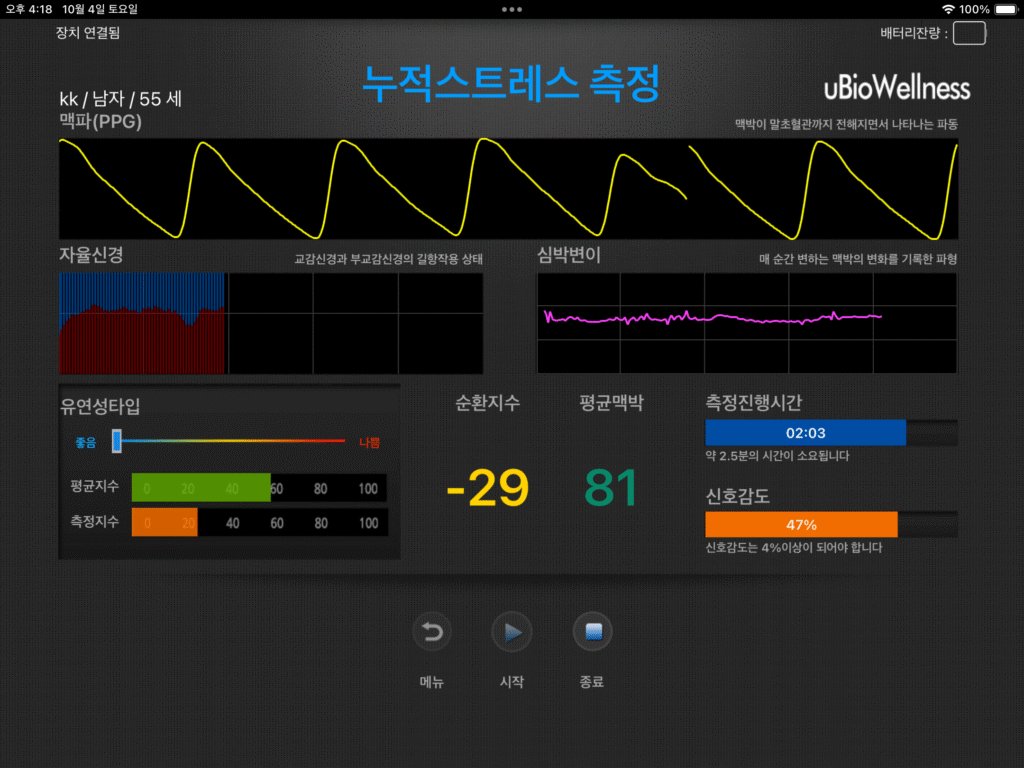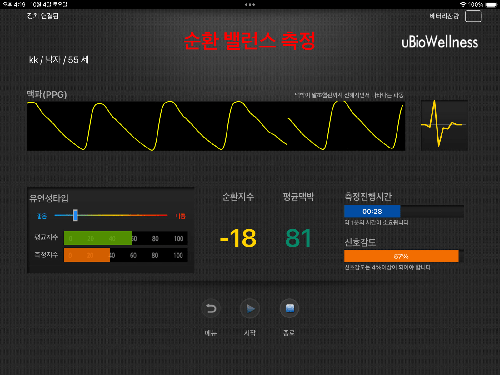 - 측정치가 기대치와 지나치게 다르면 안정을 취하고 30분 후에 다시 측정하시기 바랍니다.