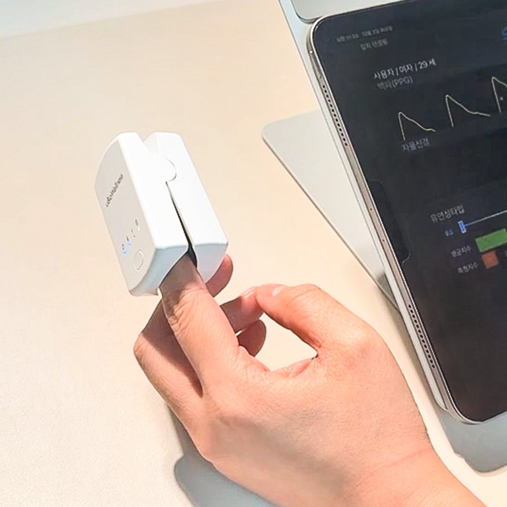 - 측정 기기 내의 손가락은 고무패드와 수평으로 하여 빛반사를 고르게 해야 정확한 수치를 얻을 수 있습니다